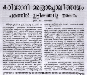 കരിയാറ്റി മെത്രാപ്പോലീത്തായും പൂതത്തിൽ ഇട്ടിക്കുരുവിള തരകനും. An article written by V.C. George and published in the Episcopal Silver Jubilee Souvenir of Mar Thomas Tharayil.