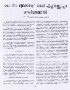 Biography of Rev. Fr. Lukose Cor Episcopa Nediyuzhathil published in the Episcopal Silver Jubilee Souvenir of Mar Thomas Tharayil as part of prominent persons of the Kottayam Diocese.