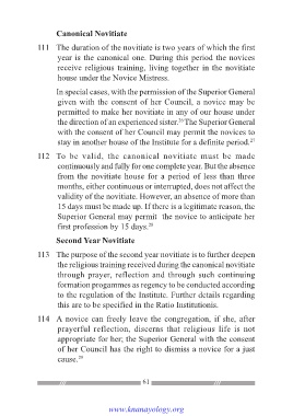 111 The duration of the novitiate is two years of which the first