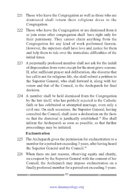 222 Those who leave the Congregation or are dismissed from it