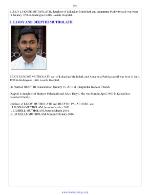 LEJOY LUKOSE MUTHOLATH son of Lukachan Mutholath and Annamma Puthiyaveettil was born in July,