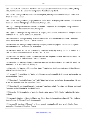 1991 November 24: Marriage of Merly d/o Chacko Mutholath and Chinnamma Kottoor with Abraham s/o