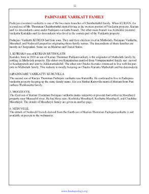 Moozhail, and Neduvelil properties originating those family names. The descendents of these families are