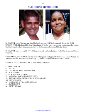 M.C. KORAH son of Kuriako and Aley Mutholath was born 1923 in Cherpunkal. He married CHIN-