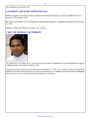 FR. MICHAEL VETTIKKATTU, son of of Kochoop (Joseph) Vettikkatt and Chinna Mutholath was born in