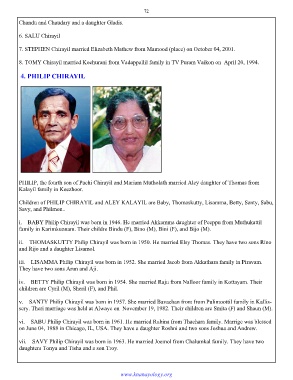 iii. LISAMMA Philip Chirayil was born in 1952. She married Jacob from Akkathara family in Piravam.