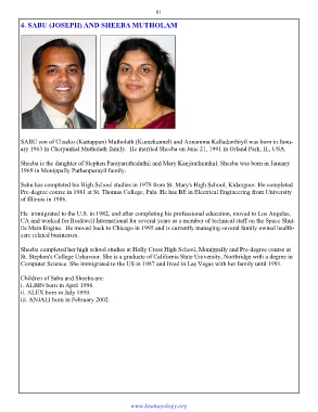 ary 1963 in Cherpunkal Mutholath family. He married Sheeba on June 21, 1991 in Orland Park, IL, USA.