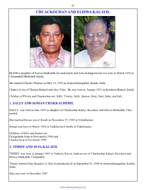 Chakco is son of Thomas Kalayil and Aley Velel. He was born in January 1933 in Keezhoor Kalayil family.