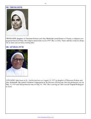 THOMASINE daughter of Thomman Kottoor and Aley Mutholath joined Sisters of Charity, a religious con-