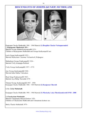 DESCENDANTS OF JOSEPH (KUNJEP) MUTHOLATH