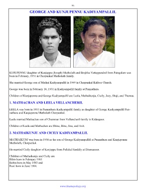 Children of Kunjupennu and George Kadiyampallil are Leela, Mathaikunju, Cicily, Josy, Shaji, and Thomas.