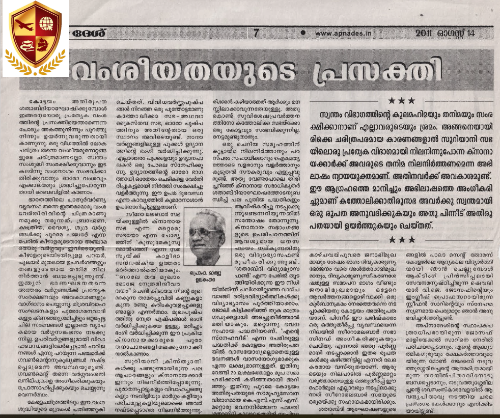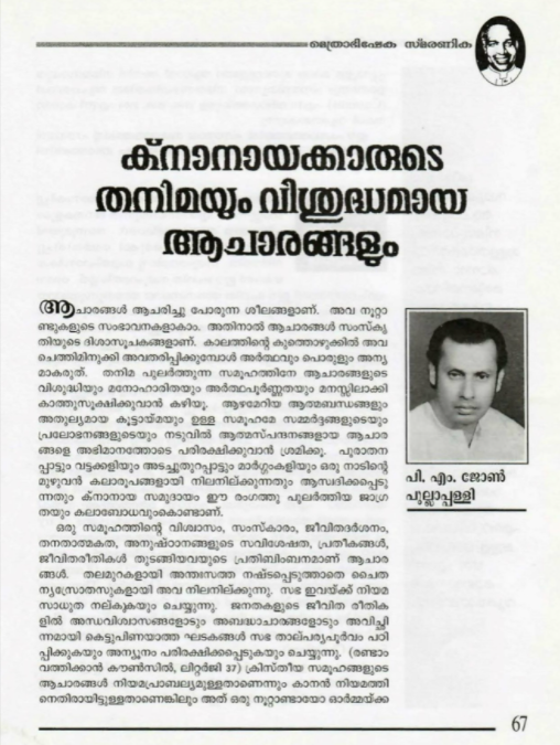 by P.M. John Pullappally in the Platinum Jubilee Souvenir of the Eparchy of Kottayam (Flip Book).