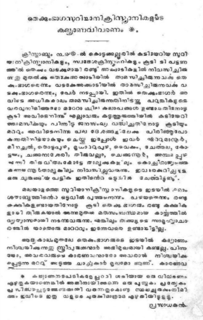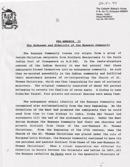 Endogamous practice in the Eparchy of Kottayam