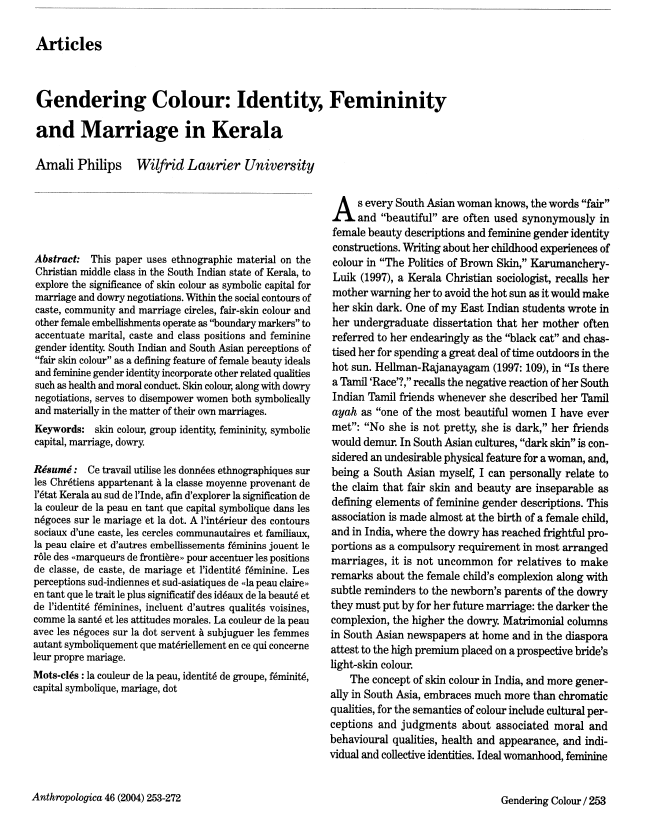 Identity, Femininity and Marriage in Kerala