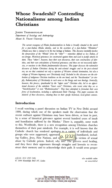 Contending Nationalisms among Indian Christians