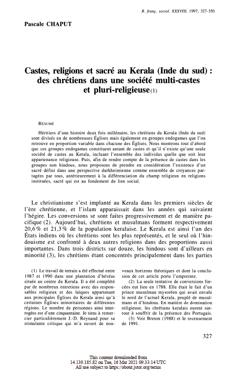 Castes, Religions and Holiness in Kerala
