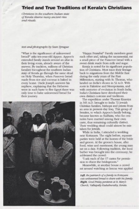 Article on Kerala's traditions highlighting Knanaya customs by Sean Sprague (Flip Book).