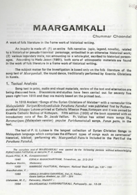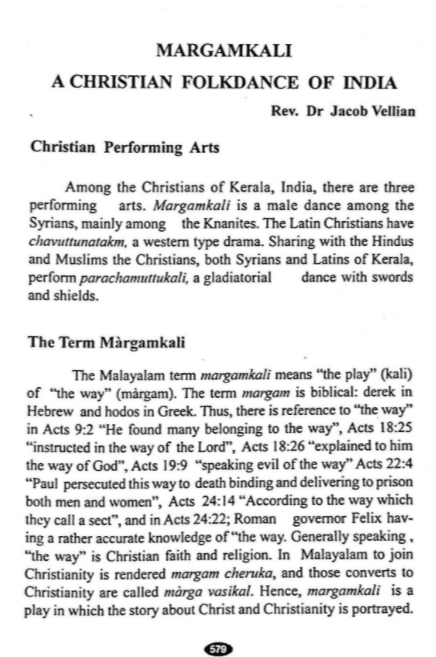 A detailed article on Margamkali in English by Rev. Dr. Jacob Vellian Explore Back