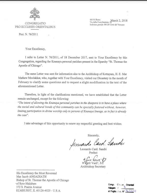 allowing personal parishes for Knanaites in the United States. (PDF)
