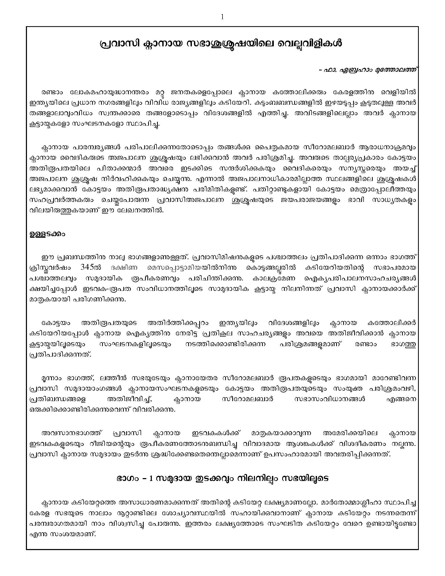 പ്രവാസി ക്നാനായ സഭാശുശ്രൂഷയിലെ വെല്ലുവിളികൾ (Flip Book).