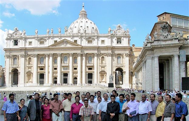 Knanaya Catholic Global Convention in Rome on July 4, 5, 6, 2003 attended by delegate of the prefect of the Oriental Congregation, Bishop Mar Kuriakose Kunnacherry, Mar Mathew Moolakkatt and vicar generals. Explore Back