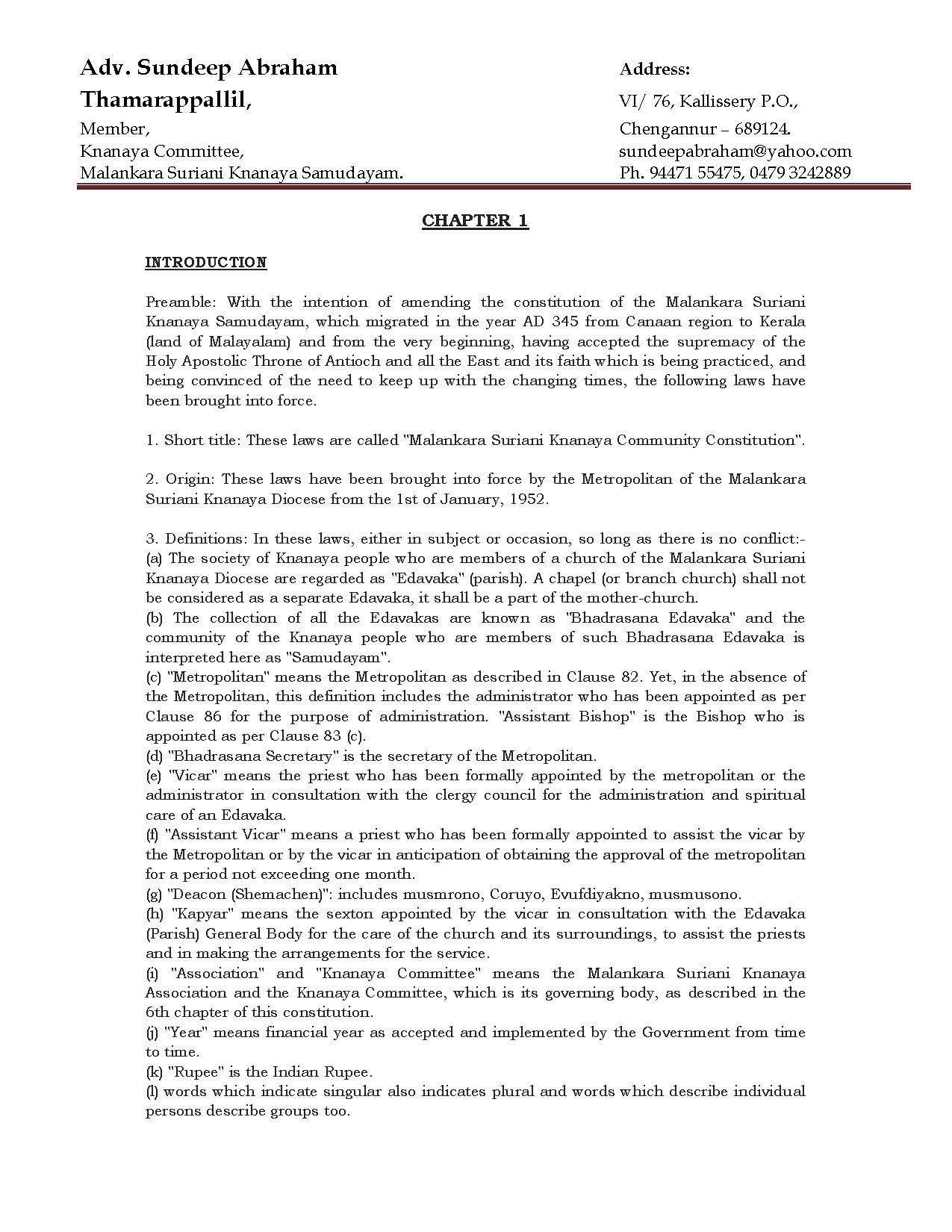 The Malankara Suriyani Knanaya Constitution in English (FLIP BOOK).