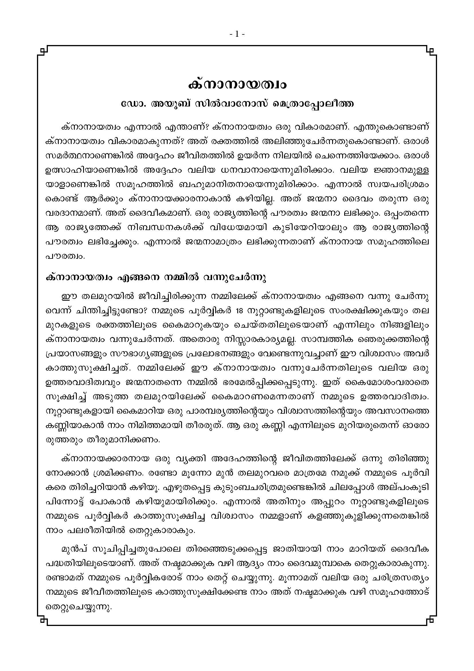 An article on Knanaya Identity by Archbishop Dr. Ayub Mor Silvanos Explore Back