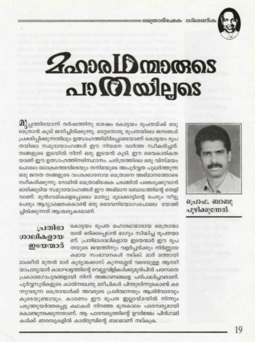 Published in the Consecration Souvenir of Mar Mathew Moolakkatt (Flip Book).